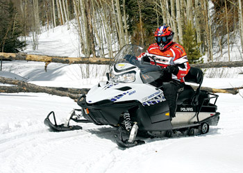 Instead, Polaris has gone the less complicated, lighter route and simply has tipped the rails at the rear so less track is on the snow in hard packed conditions. This makes steering a bit easier and still allows 100 percent traction in powder. Weight is further shaved off by using a conventional 2-shock skidframe.