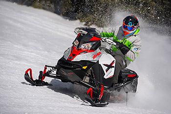 This requires some preplanning and throttle control because the sled will understeer in fluffy snow. On hard packed snow this tendency is much less and the weight of the heavier engine works to the rider’s advantage.