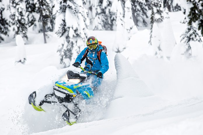 Speaking of going places, the effectiveness of a 175-inch track with a 3-inch paddle can’t be understated. Combine that level of traction with Ski-Doo’s outstanding E-TEC 850 powerplant and the only places you won’t be able to go will be the ones restricted by the CIA. This power package produces so much bottom end, the track never seems to get bogged down. Of course this is also thanks in a big way to the pDrive primary that squeezes super hard and upshifts lightning fast while maintaining optimal engine RPM. Perfect!