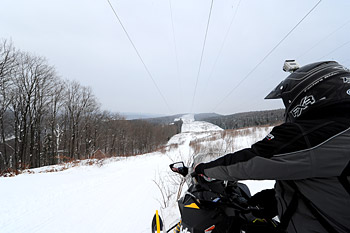 Before we knew it, we were following signs to our next stay at Pouvoire du Lac Blanc. The Quebec lodges that truly thrive on snowmobile business always have their own feeder trails leading right to the front door of the establishments.