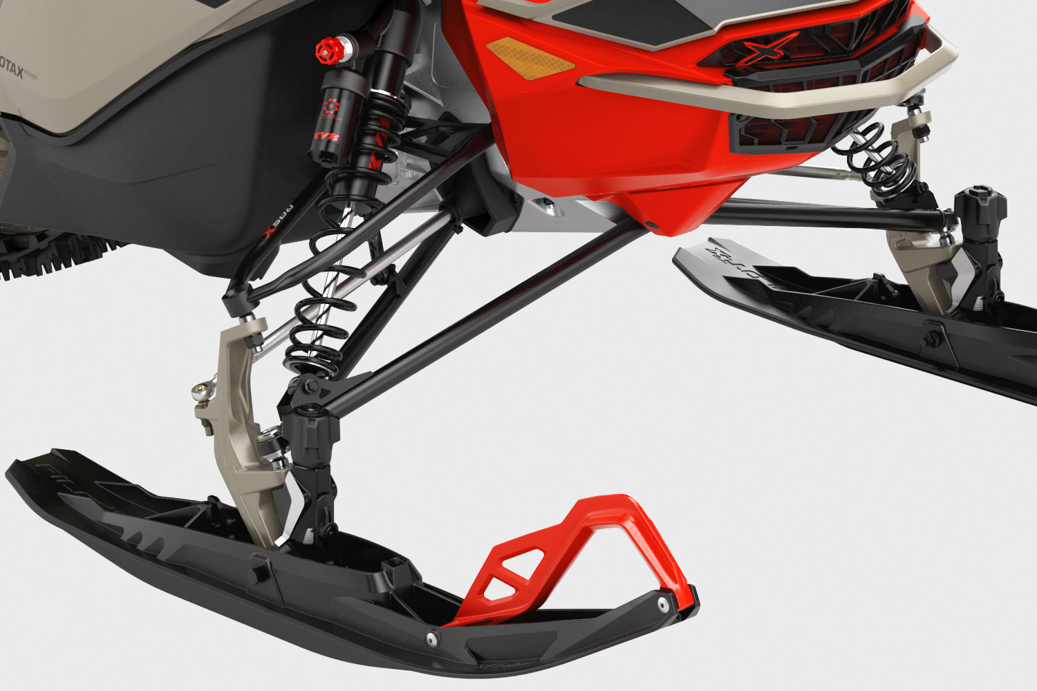 The TS-X ski works equally as well on the G4 2-strokes as it does on the 4-strokes. We did experience more push at higher corner entry speeds on the 4-strokes, but that is mostly due to the extra inertia from the heavier 4-stroke engines. This was easily countered by dialling-in more carbide depth.