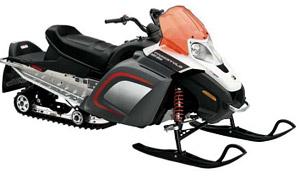 Ergonomics are designed for stand-up or sit-down riding, with high-rise handlebars and a low profile seat that makes it easy to move around the sled.Under the hood is the RotaxT 300 single cylinder 2-stroke engine, with enough power to cruise through the snow and over hills, yet friendly enough to control easily.Up front is a single A-arm front suspension, with lightweight plastic skis.