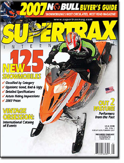 The 2007 No Bull Buyer’s Guide features detailed specs, opinions and prices for 125 new snowmobiles all classified by category! You’ll also find the Vintage Calendar, performers from the past along with all the great featured columns Supertrax is famous for.