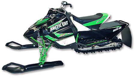 Transferring the power from engine to the track is an Arctic Cat drive clutch, TEAM driven clutch and Peak Torque Limiting System driveshaft, a combination proven bulletproof on last year’s Sno Pro Mod sled. New, however, is a higher driveshaft location for increased ground clearance.