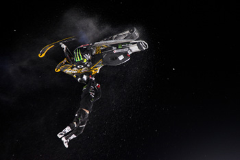 The crackling whine of two-stroke engines and smell of premix at 8,000 feet quafted off into the distance Sunday night at X Games 15 with the running of the fifth and final snowmobile event, Best Trick.
