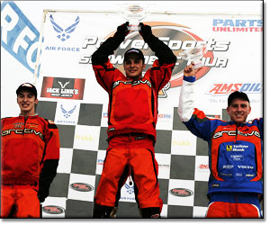 In Women’s Pro Super Stock on Saturday in an incredible effort, Avalanche Racing’s Kylie Abrahamson went from falling off her machine at the start of the race to come from the very back of the field and catch Sarah Mc Question for the win. Both riders are sponsored by Parts Unlimited and it’s Arctiva Apparel and Z1R helmet brands.