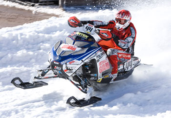 His first victory may have been the most impressive as he charged virtually from last to first in a single lap. Starting from the back row of the 16-sled field, Davis combined a race savvy start and a turn one tangle to catapult his Arctic Cat to the front of the field. “I was hoping if I started on the inside (of the back row) the leaders would push wide and they did,” said Davis from atop the podium. “That put me in position to take advantage of the first turn crash and allowed me to get to the front.”