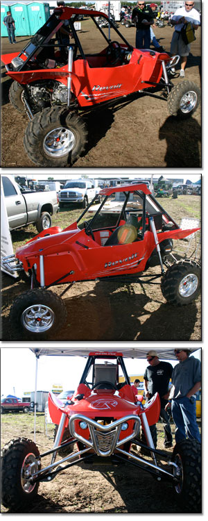 The single-passenger Redline Revolt STV (Sport Terrain Vehicle) is powered by an EFI 749cc, liquid-cooled, 4-stroke built by Weber in Germany with a CVT transmission. The Revolt is capable of speeds up to 60mph and features shaft drive to the rear wheels.