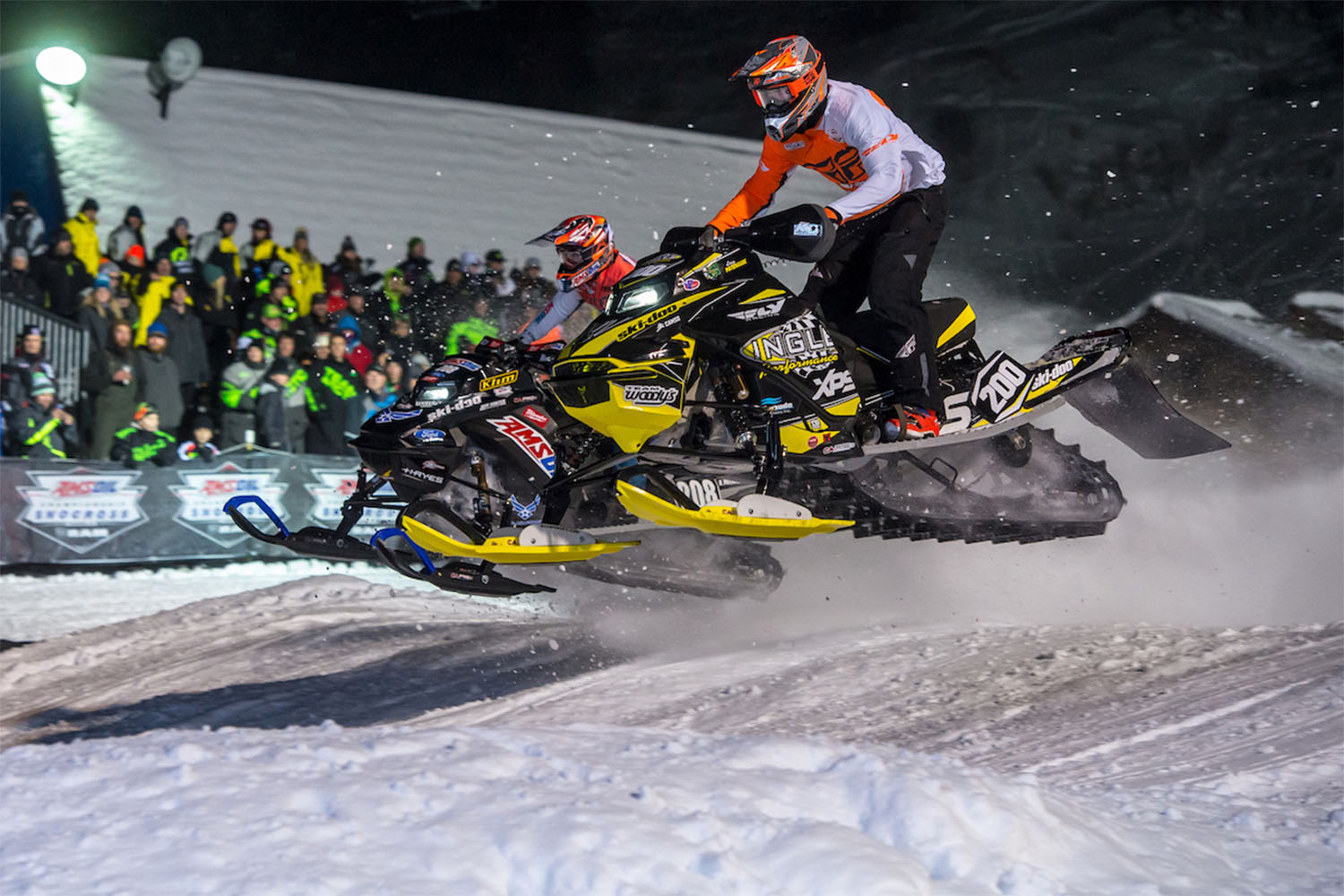 The new Ski-Doo MXZx 600 RS E-TEC race sled has proven to be fast, durable and easy to handle as shown by both run away wins and tough rides through the pack. Friday Lemieux started the final with a strong holeshot and after the first lap established a lead that wouldn’t be challenged, but the Warnert duo of Renheim and Tremblay had to work their way through traffic from mid pack starts to earn their podium spots – and they were followed across the line by BOSS teammates Ishoel and Aki Pihlaja to make it a top five sweep! Saturday’s race had a very familiar feel as Ishoel and Pihlaja shot out ahead of the pack with Lemieux close behind in fifth while Renheim and Tremblay were mid pack. Ishoel staked claim to the top spot and slowly began building a lead that went unchallenged, while Lemieux and Pihlaja both had challenges as Lemieux came off in front of Pihlaja and he couldn’t avoid hitting the sled virtually ending Aki’s night while Lemieux was able to remount and finish eighth. Renheim and Tremblay were in full attack mode as they came through the pack yet again and with a couple laps left cemented their podium positions and the Ski-Doo sweep. Elias Ishoel’s fast qualifying and stellar final results helped him increase his championship points lead as the series breaks for the holidays.