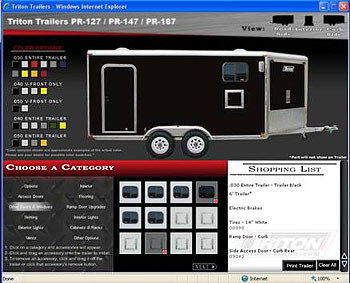 Check out the sample screen shot left showing this new innovative tool. The Build-A-Trailer tool will prove to be a great source for dealers and consumers alike, to better understand enclosed trailers and to provide a clear shopping list for quoting the trailer you built.