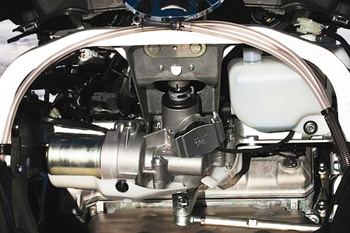 The system is variable ratio so steering effort increases as the speed goes up, leaving the rider with a nice, predictable in-control feeling all the time.