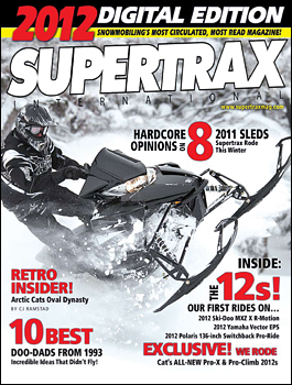 The March printed edition of Supertrax was always a great idea and very much loved by our readers, so we wanted to find a good way to relate all the 2012 new sled info to you including any special programs the OEMs had dreamed up for special purchasing incentives and freebies on the 2012s. The idea was to get the information to you as fast as possible and, unfortunately, printed magazines take longer to process to the final stage of reaching your doorstep than digital ones do.