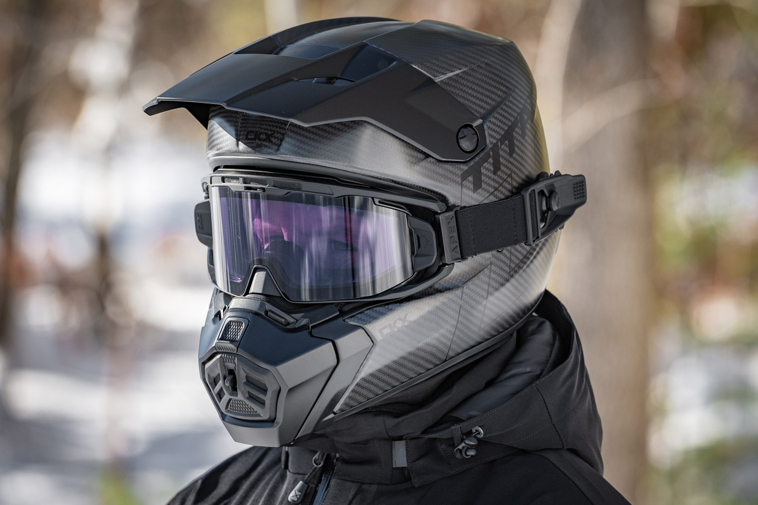 The CKX Titan AMS Pro snowmobile helmet delivers unmatched versatility. Its AMS (Air Management System) is designed to keep your head dry, your helmet frost-free, and your goggles clear and its front adaptive muzzle features adjustable vents and interchangeable grills, giving you complete control over airflow in any condition.