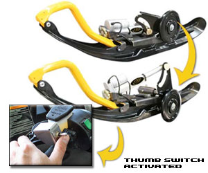 The SW Electric is independently automated so you do not need to stop the snowmobile to activate it and handling over hard surfaces will increase dramatically as the wheels will grip the road and lift the skis from the ground.
