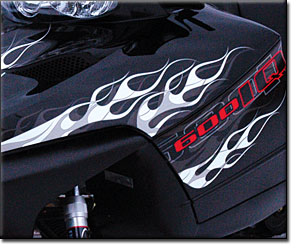 Pure Polaris offers a wide variety of graphics kits for the Shift. We chose Winter Camo Flames. Is that sick or what?
