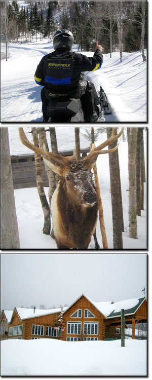 A recent renovation includes an indoor salt-water pool, indoor hot-tub and three more outdoor hot-tubs. Each room has a gas fireplace and satellite television. You can rent sleds (we rented new Ski-Doo REV XP 600’s) right there and Yves has even prepared several different snowmobile routes of varying distances that begin right at the resort.