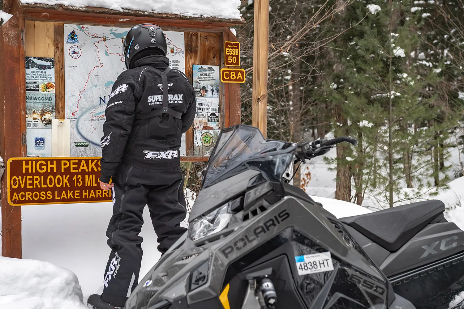 For this trip, we hooked up with Sara-Placid Sled and Spoke in Saranac Lake and rented a pair of sweet Polaris Patriot 650 Switchback XC’s. Sled and Spoke has a fabulous fleet of new Polaris sleds to rent and it is located right on the Rail Trail in Saranac Lake, just a few miles from Lake Placid.